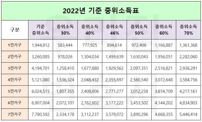 <2022년 기준중위소득표>